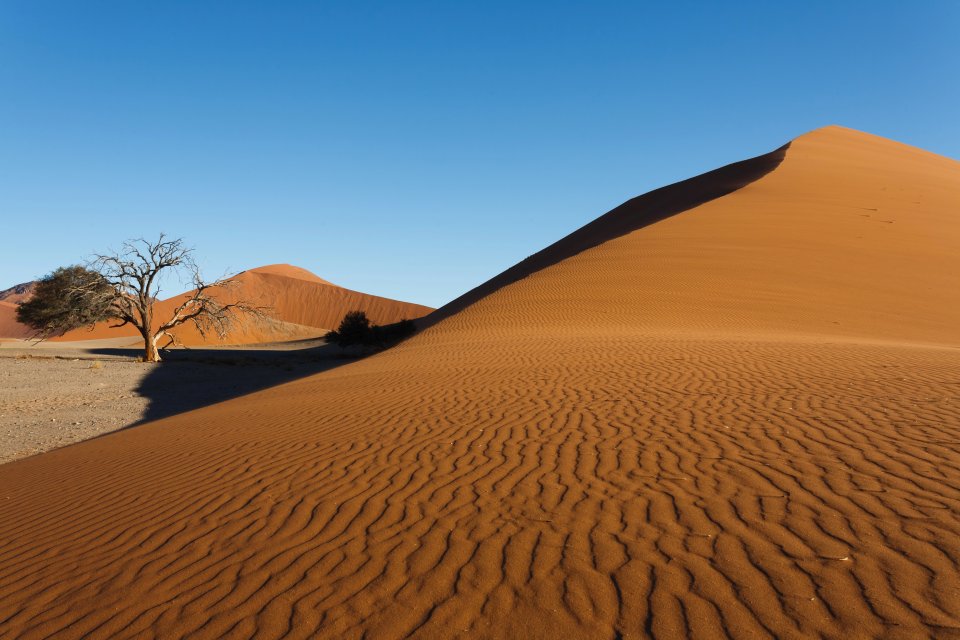 Big Daddy is the tallest sand dune in the Namib Desert, located near Sossusvlei, Namibia. It reaches approximately 325 meters in height and is one of the most impressive dunes in the world. Climbing it offers incredible views of the surrounding red sands and the salt pan of Sossusvlei. It is a challenging climb, but the reward is breathtaking.