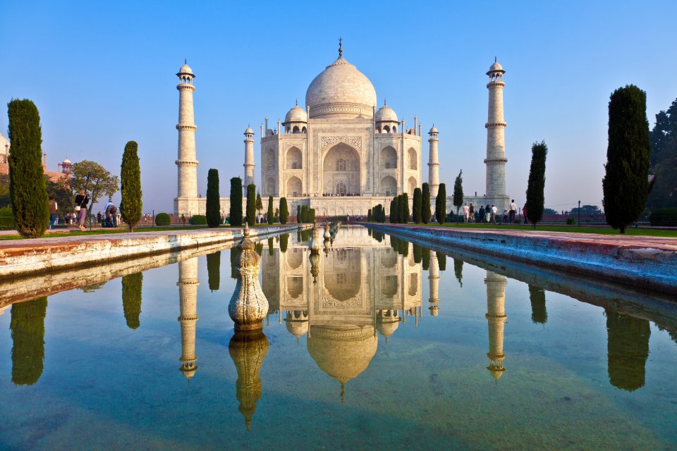 The Taj Mahal is an ivory-white marble mausoleum on the south bank of the Yamuna river in the Indian city of Agra. It was commissioned in 1632 by the Mughal emperor, Shah Jahan (reigned from 1628 to 1658), to house the tomb of his favourite wife, Mumtaz Mahal. The tomb is the centrepiece of a 17-hectare complex, which includes a mosque and a guest house, and is set in formal gardens bounded on three sides by a crenellated wall. The Taj Mahal complex is believed to have been completed in its entirety in 1653 at a cost estimated at the time to be around 32 million rupees, which in 2015 would be approximately 52.8 billion rupees (U.S. $827 million). It was designated as a UNESCO World Heritage Site in 1983 for being “the jewel of Muslim art in India and one of the universally admired masterpieces of the world’s heritage”. It is regarded by many as the best example of Mughal architecture and a symbol of India’s rich history. The Taj Mahal attracts 7–8 million visitors a year.